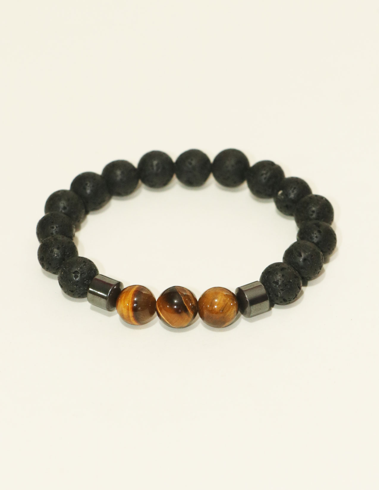 10mm Volcanic Black mixed with tiger eye. 8 inches. Items are authentic, handmade in Jamaica. Items will be shipped from Jamaica.
