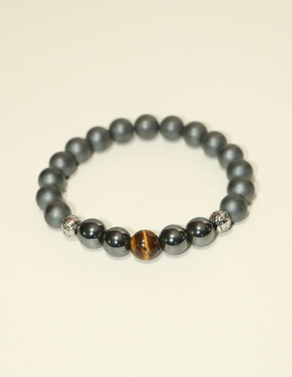 10mm gray and tiger eye mixed with gun metal. 8 inches. Items are authentic, handmade in Jamaica. Items will be shipped from Jamaica.