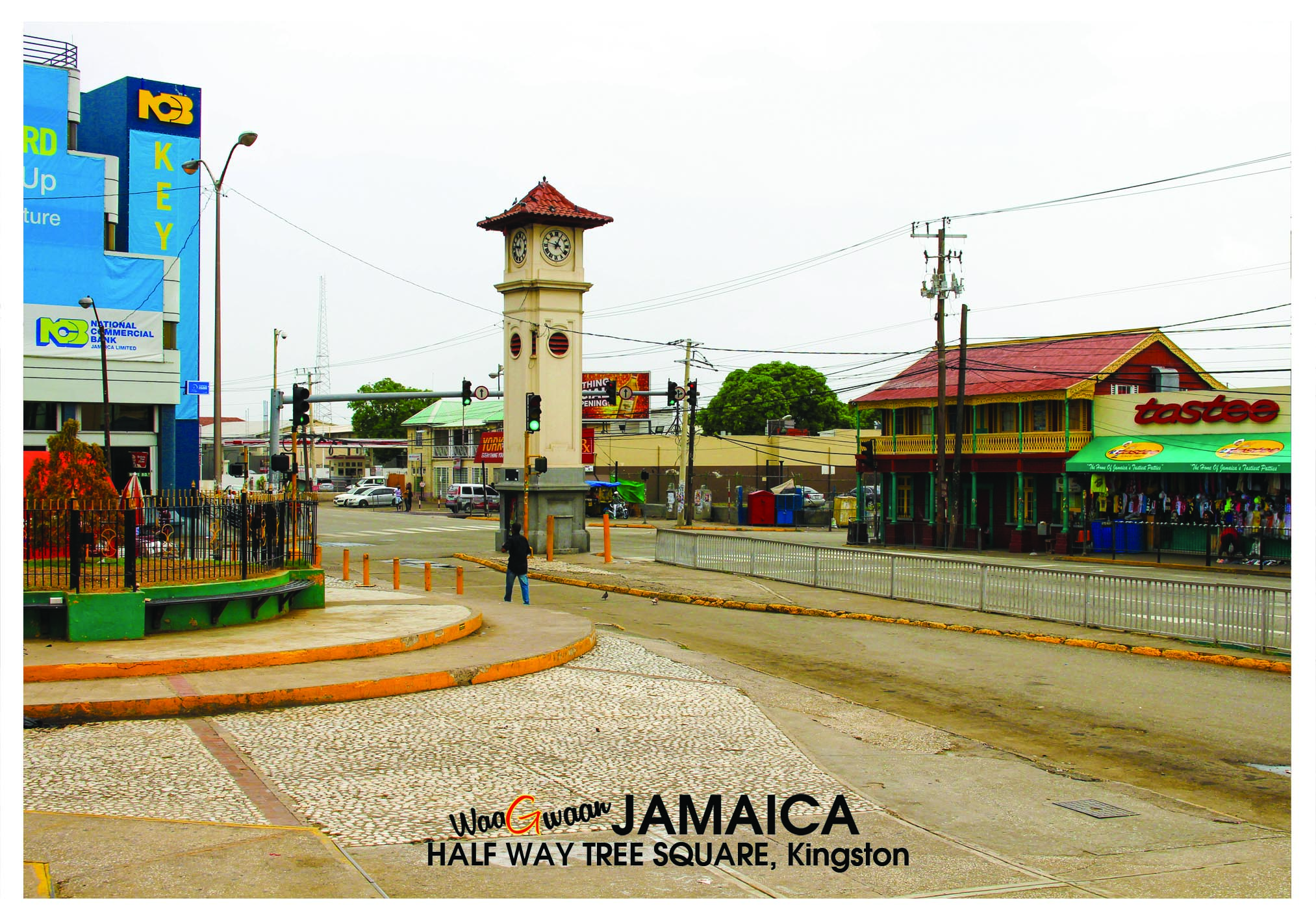 Half Way Tree was originally known as Half-Way-Tree Pen. It was named after a cotton tree which was located at the junction of four roads and up to 1866 was half way between two places: Greenwich in St. Andrew Hill, where the English soldiers had their camp and the fort near Spanish Town. The soldiers always rested at this spot (halfway their journey) before proceeding to the fort.