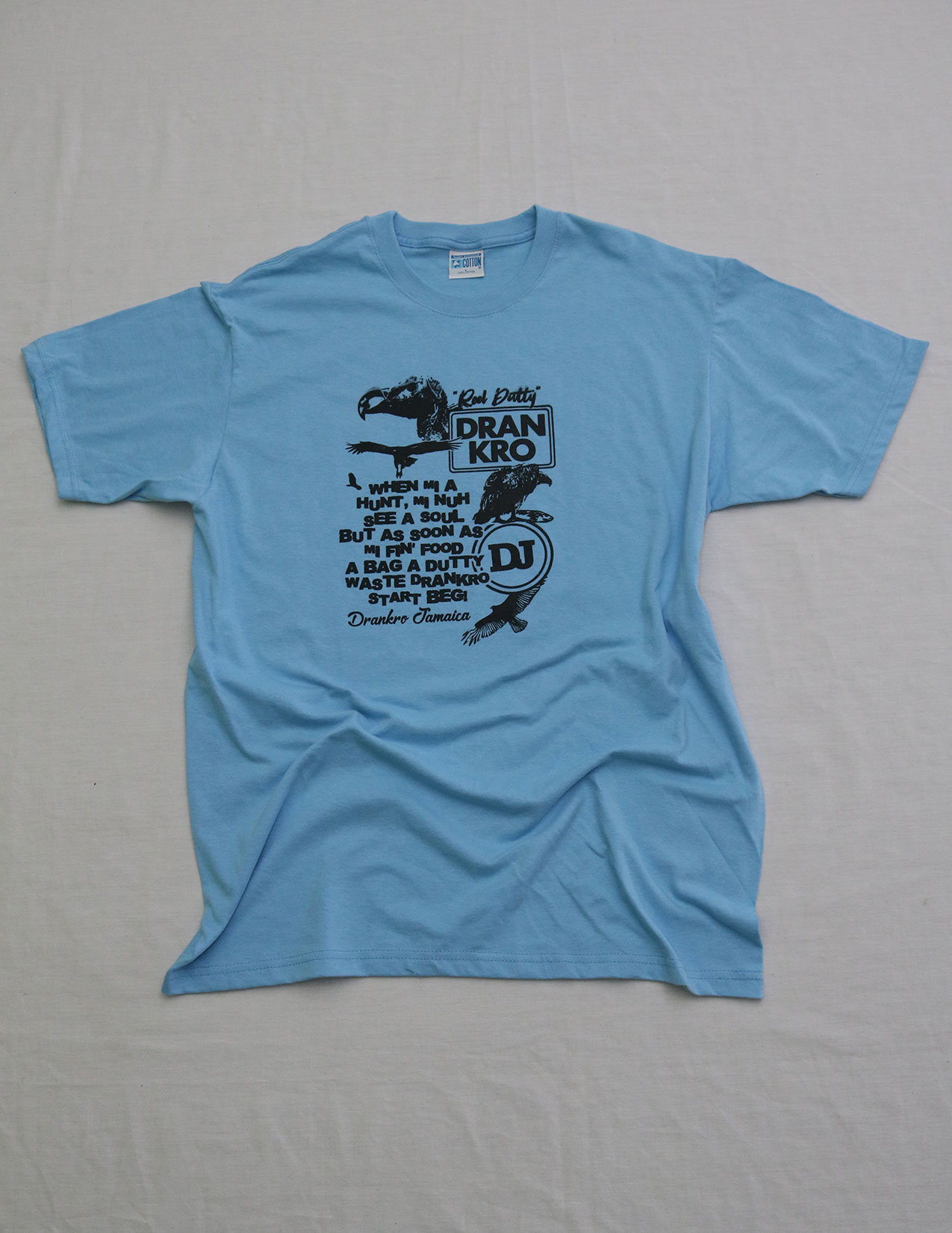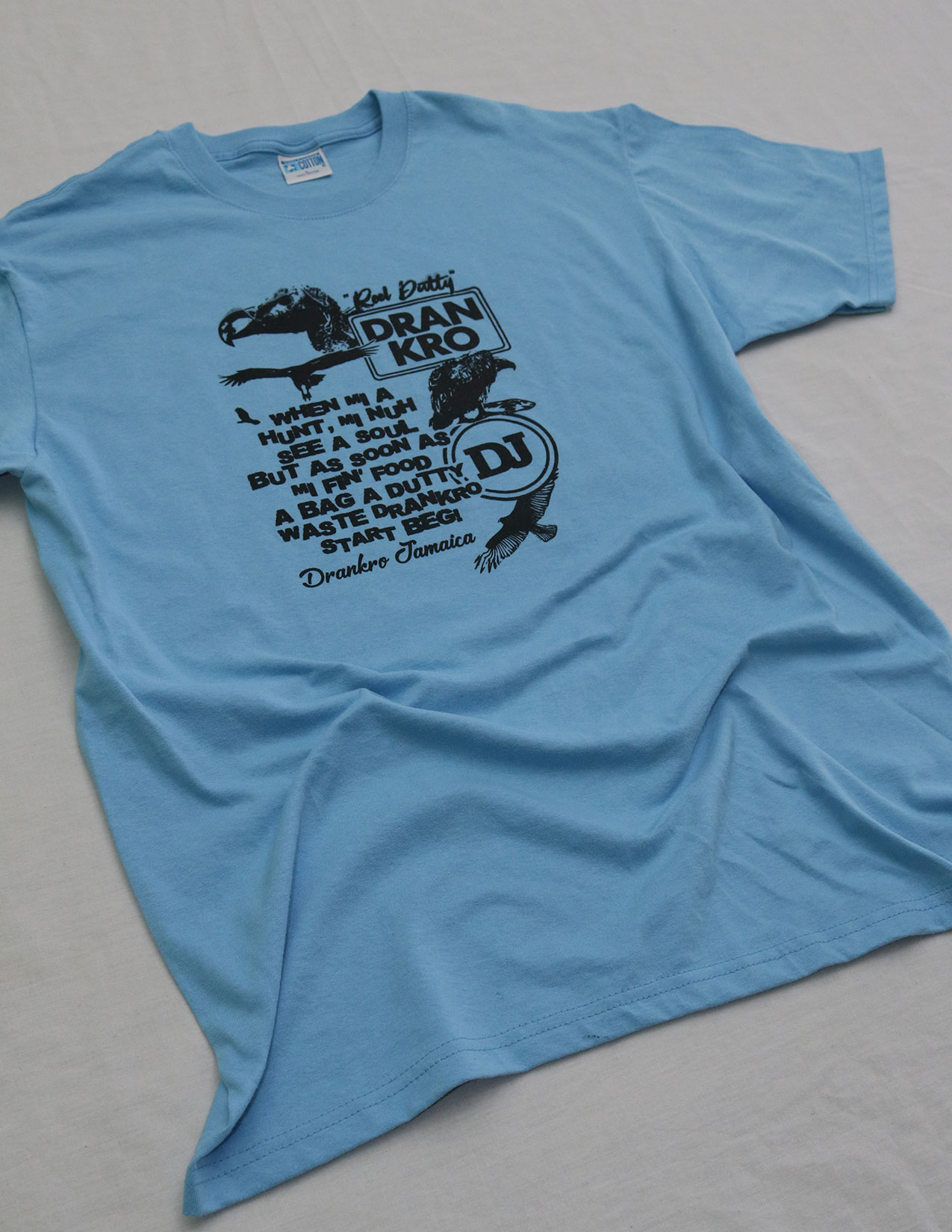 Tshirt is made from 100% Cotton, Made in Jamaica. Product will be shipped from Jamaica