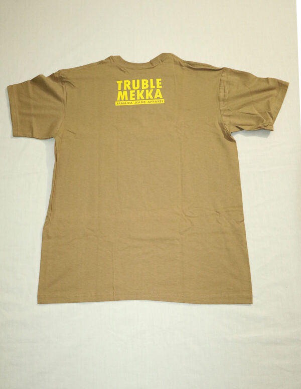 Tshirt is made from 100% Cotton, Made in Jamaica. Product will be shipped from Jamaica. Colour is khaki